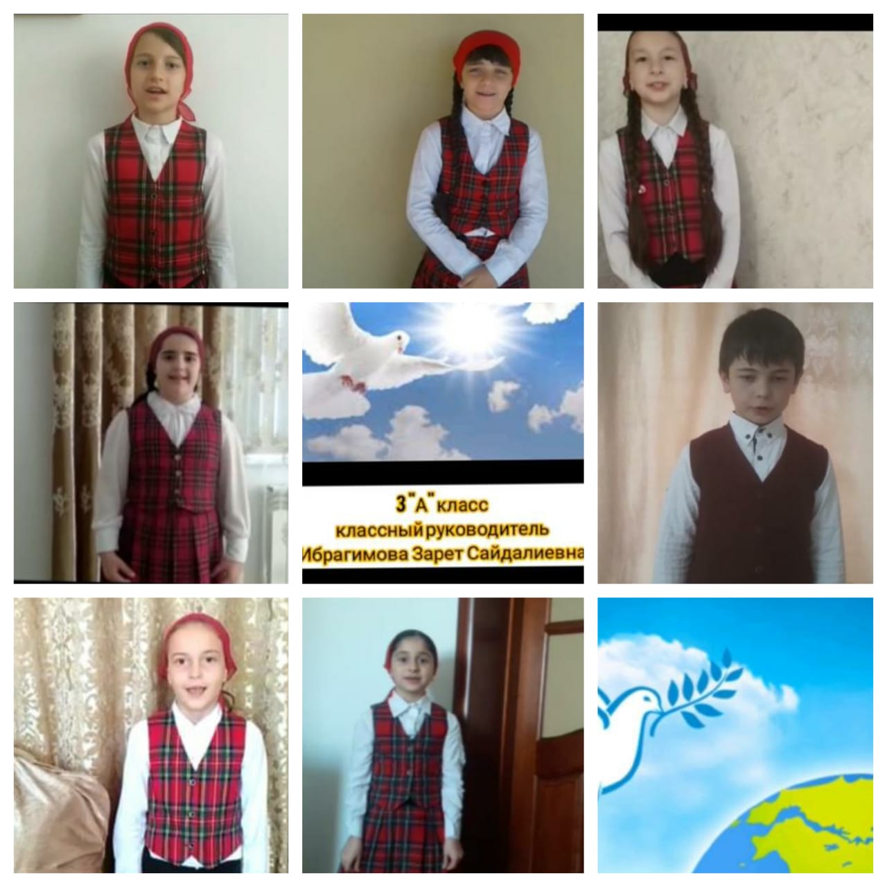 16.04.2020В рамках празднования Дня мира в Чеченской Республике обучающиеся 3"А "класса МБОУ" СОШ 1с.п.Гвардейское" провели дистанционное мероприятие на тему:" Живая память". Цель мероприятия :формирование у учащихся духовно - нравственных ценностей, чувства патриотизма и гордости за своего Героя.