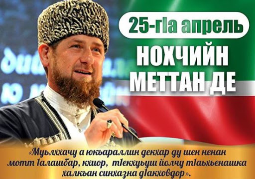 25.04.2020Вайн Мехкан Дех Кадыров Ахьмад-Хьаьжин Рамзанах вайн махкана, вайн къомана, Делан къинхетамца, даьллачу беркатех цхьа беркат ду вай тахана, 25 апрелехь, даздеш дерг – НОХЧИЙН МЕТТАН ДЕ! «Нохчийн къам дийна хиларан мокхазан чIагIо ю ненан мотт» – тӀулга тӀе яздина йоза санна, нохчийн иэсан тептар тӀе дӀаяздина ду Нохчийн Республикин Хьалхарчу Президентан Кадыров Ӏабдулхьамидан Ахьмад-Хьаьжин дешнаш. Нохчийн Республикин Куьйгалхочо Кадыров Рамзана 25 апрель-Нохчийн меттан Де аьлла, къастийнчу шарахь дуьйна, хӀора шарахь нохчийн къоман синкхетам шорлуш, лакхаболуш бу. БӀаьстенан зазанца хазлучу махках терра хуьлу Нохчийн Мохк 25 апрелехь.