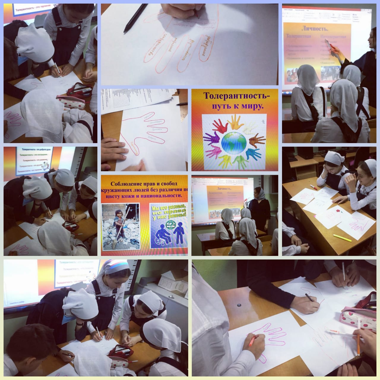 Классным руководителем 7"В" класса Бехоевой М.Р. был проведен классный час на тему:"Толерантность - путь к миру", посвященный Дню толерантности