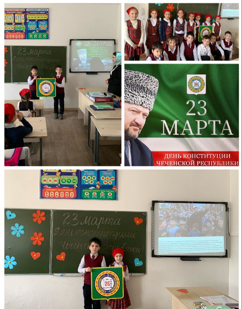 Беседа "Страницы истории Чеченской Республики", посвященная Дню Конституции Чеченской Республики (кл. рук. 1 "Б" класса Альмурзаева М. М.)