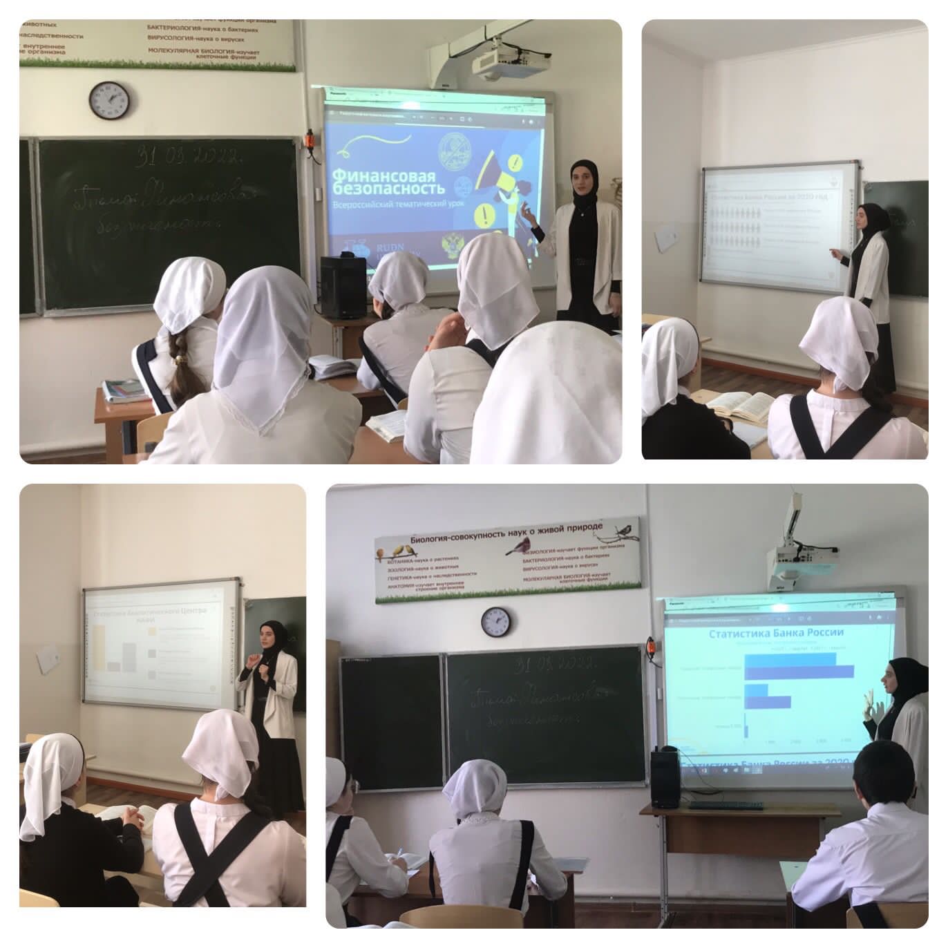 С 30-го по 31-вое марта были проведены Всероссийские уроки на тему: «Финансовая безопасность» в 8-10х классах. Учителем обществознания Шабиевой Б.Б.