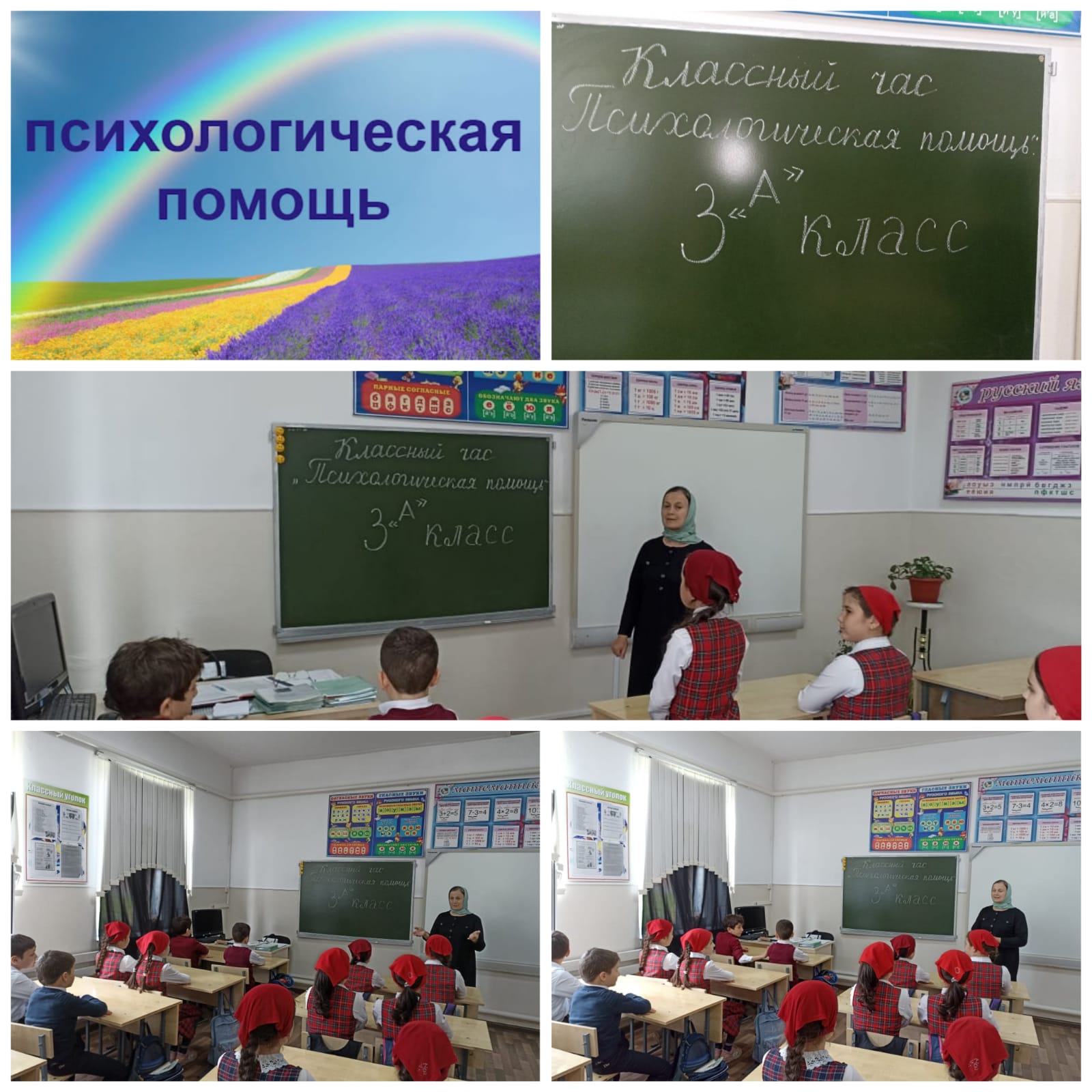 В МБОУ "СОШ 1с.п.Гвардейское" в 3"А "классе классным руководителем Шахмурзаевой Л.П.проведен классным час, приуроченный к неделе психологии на тему:" Психологическая помощь&qu
