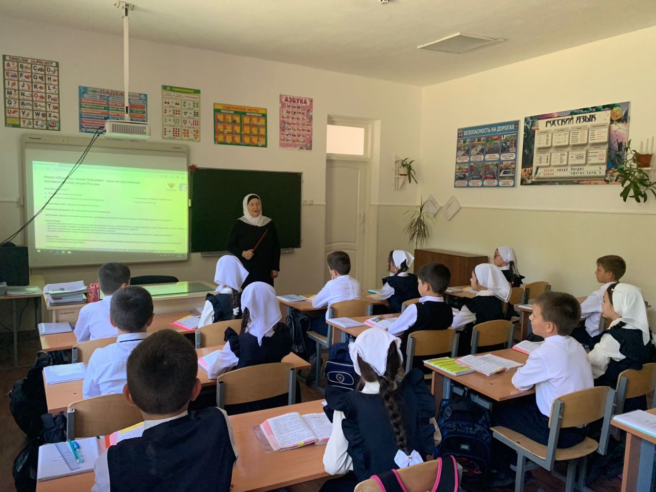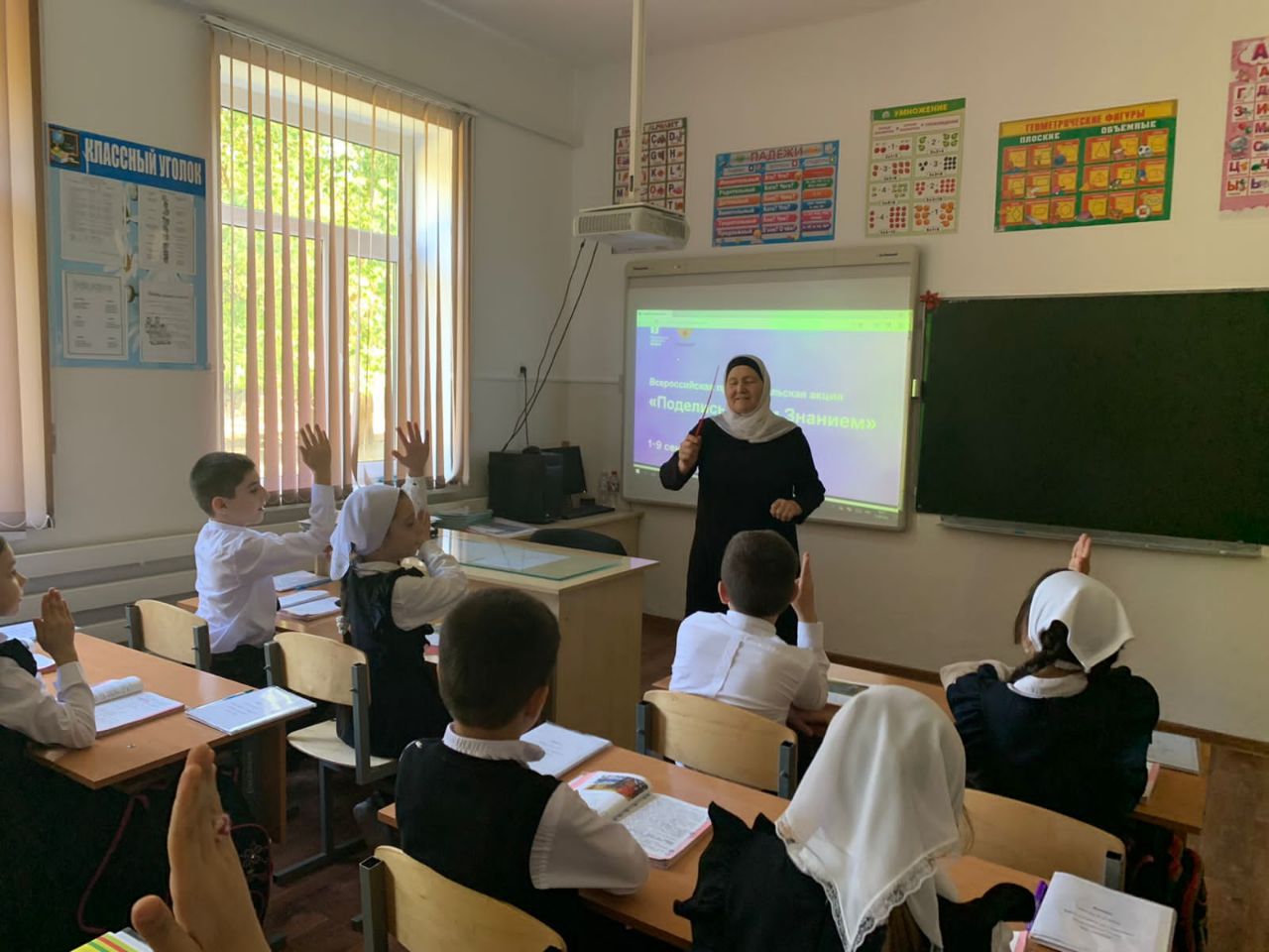 Лектором выступила Марьям Алиевна - Почетный работник общего образования Российской Фередации. Работает В школе болле 54 лет учителем начальных классов. Она поделилась с ребятами историей личного успеха, рассказла о причинах выбора профессии и пожелала ребятам всегда добиваться поставленных целей. Также отметила то, что очень сложно получить образование, так как в наше время это большой и упорный труд каждого выпускника.