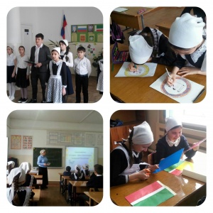 С учащимися 5 класса проведен тематический урок «Конституция Чеченской Республики – 14 лет мира и стабильности» (классный руководитель Эльмурзаева А.А.).Она рассказала детям о городах государственного значения, о восстановлении Чеченской Республики.