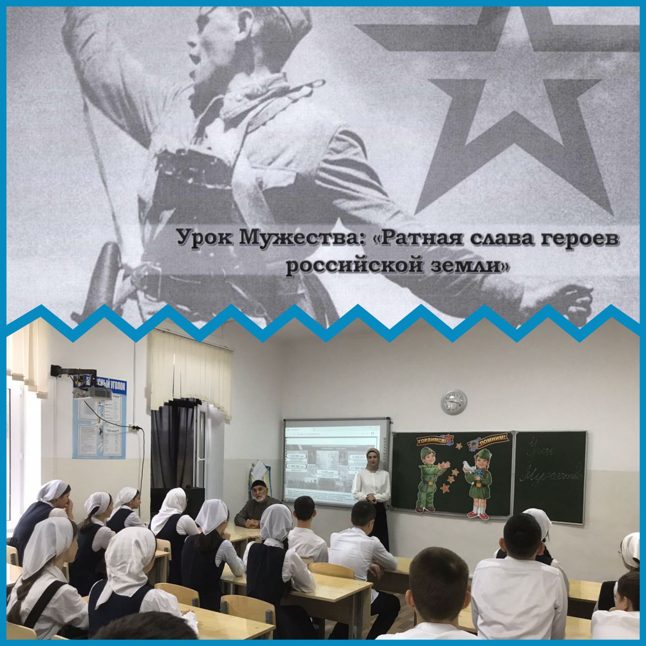 Учитель истории и обществознания Шабиева Б. Б. провела Урок Мужества среди обучающихся 9-11 классов на тему:"Ратная слава героев российской земли ".