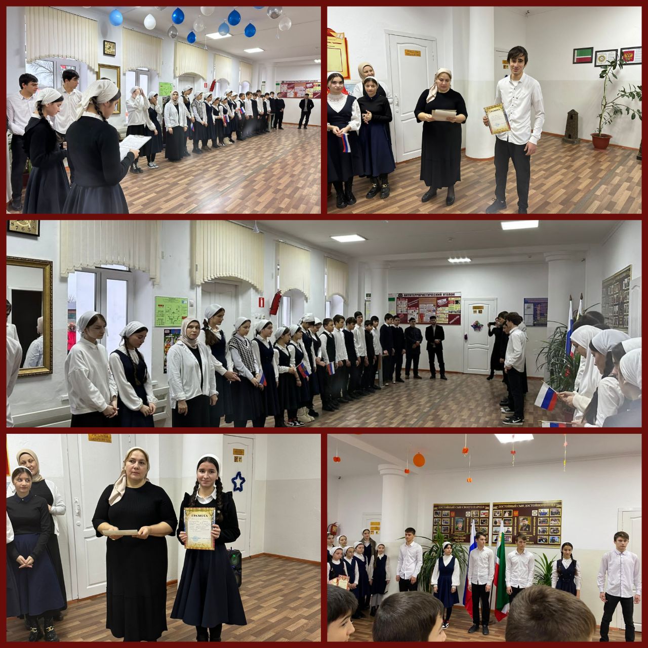 12.12.2022Учебная неделя в нашей школы началась с традиционной линейки с исполнением государственных гимном Российской Федерации и Чеченской Республики формирует духовно-нравственное и патриотическое воспитание школьников, что является одним из аспектов становления личности.