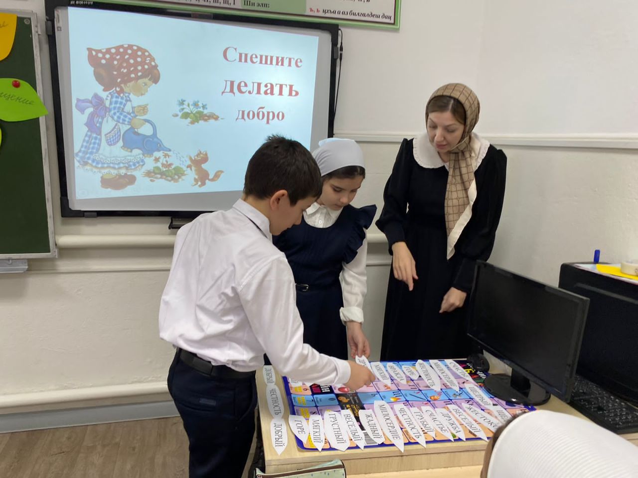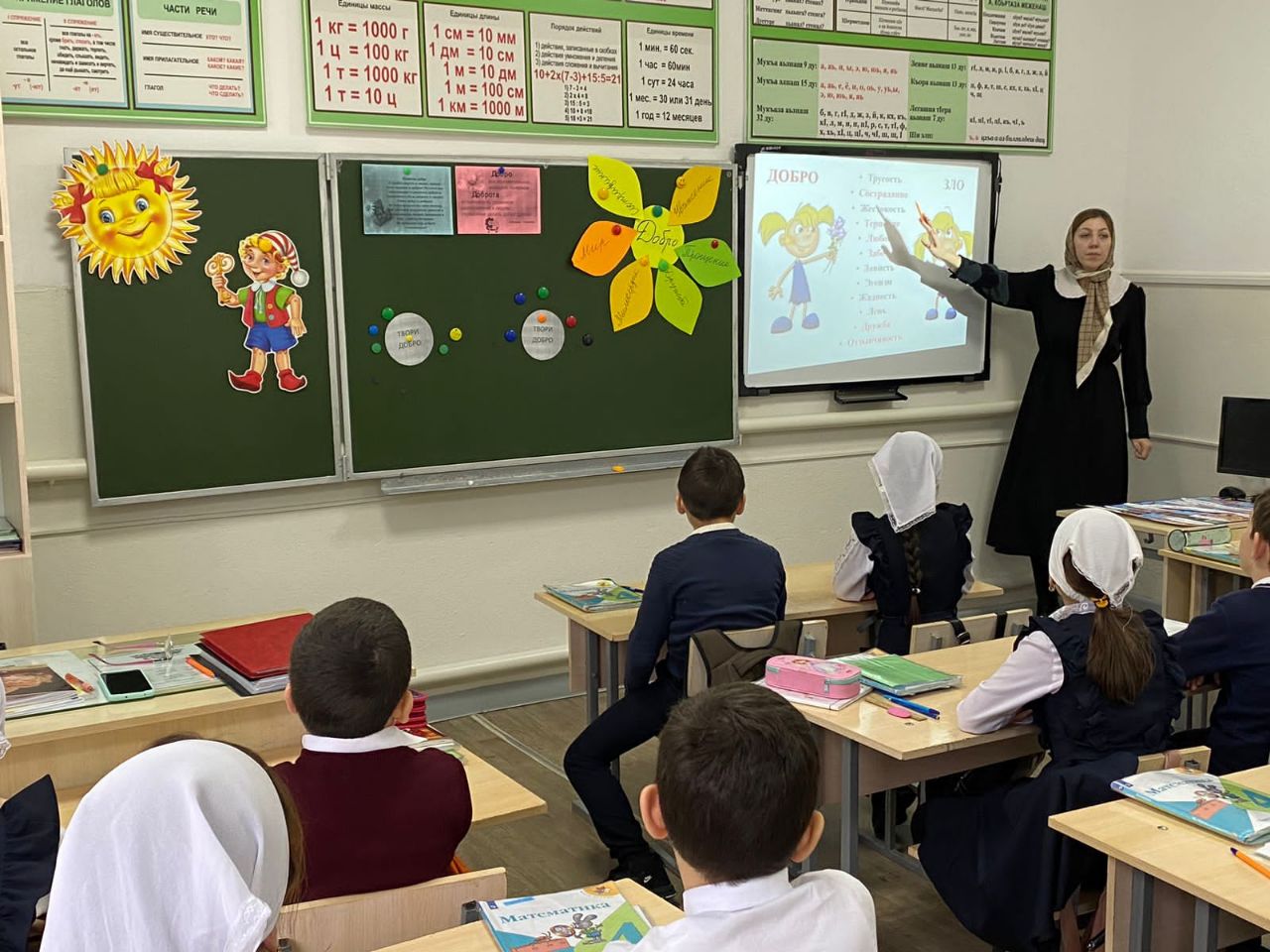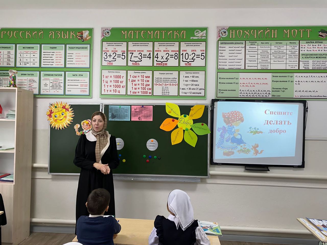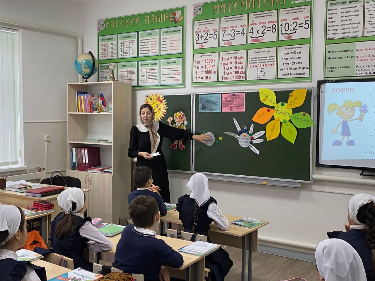 В рамках проведения "Уроки доброты" социальный педагог Ибрагимова Х. Н. среди обучающихся 3-4 классов провела беседу на тему "Дарите людям доброту!"