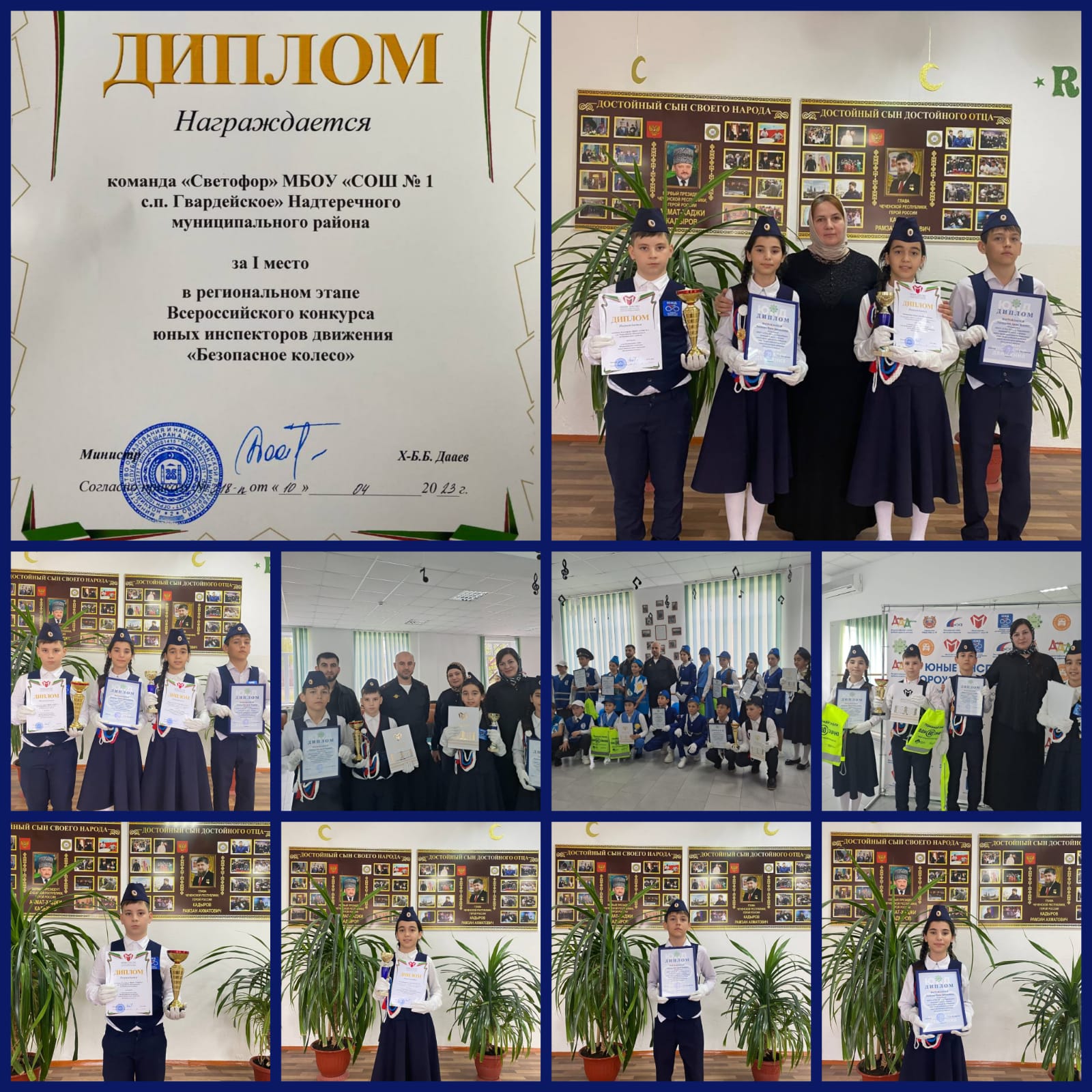 10.04.2023В рамках федерального проекта «Патриотическое воспитание» национального проекта «Образование» обучающиеся МБОУ «СОШ № 1 с.п.Гвардейское» приняли участие во Всероссийском конкурсе «Безопасное колесо».Команда ЮИД « Светофор» заняла 1 место в региональном этапе Всероссийского конкурса отрядов юных инспекторов движения «Безопасное колесо».В состав команды вошли: Арсанов Мухаммад, Эльмурзаев Арсан, Эльмурзаева Хава, Халилова Иман. Ребята стали лучшими среди 17 команд всех районов республики.Всероссийский конкурс «Безопасное колесо» -это ежегодный фестиваль с испытанием для юных инспекторов дорожного движения.Программа соревнований включала теоретические, практические испытания и творческий конкурс. Теоретический этап состоял из трех блоков: «Знатоки Правил дорожного движения», «Знание основ оказания первой помощи» и «Основы безопасности дорожного движения». Практическая часть предусматривала конкурсы «Фигурное вождение велосипеда», «Автогородок и «Оказание первой помощи пострадавшим в ДТП».Мы поздравляем команду «Светофор» с высоким результатом, а также желаем удачи и победы на Всероссийском этапе. Мы верим в вас!