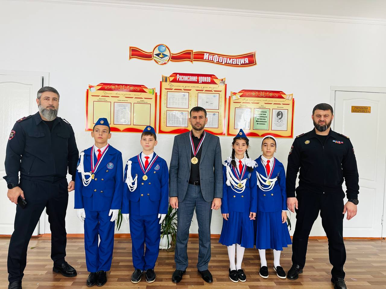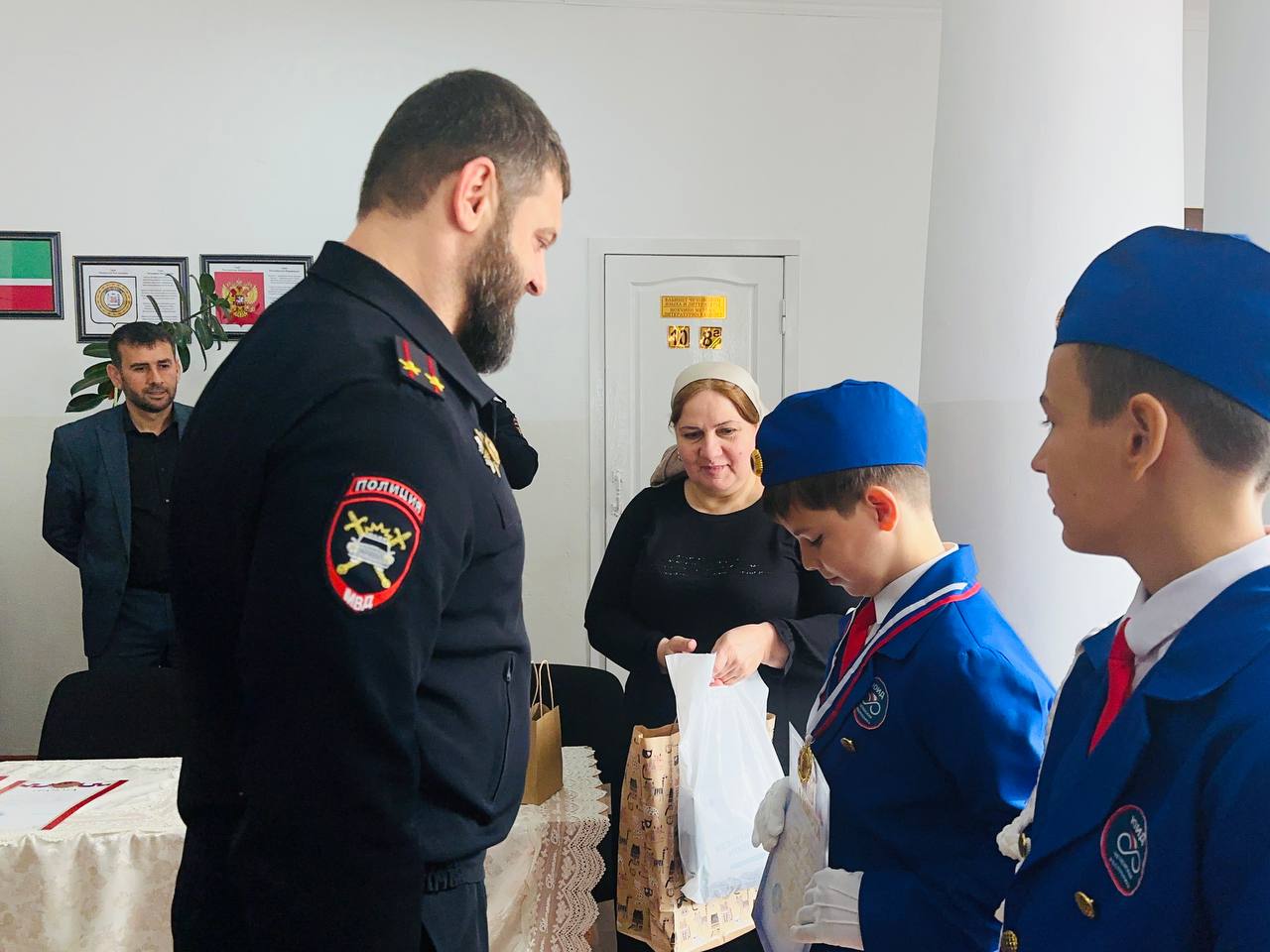 Начальник ОГИБДД ОМВД России по Надтеречному району подполковник полиции Хабатов Аслан Олхазырович и инспектор по пропаганде безопасности дорожного движения, майор полиции Махтиев Ильяс Имранович встретились с участниками соревнований и руководителем, чтобы поздравить их со знаменательным событием и вручить им благодарственные письма и подарки.