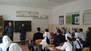 Инспекторами ПДН (Эльмурзаев С-М.А., Хасуева М.А.) проведена беседа с учащимися 9-11 классов по вопросам юридической ответственности несовершеннолетних за употребление и распространение наркотиков, за курение, употребление спиртного.