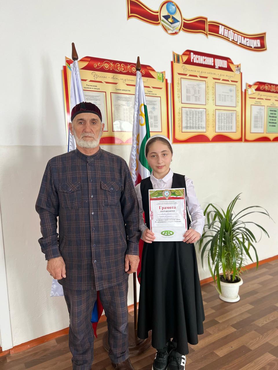 Ученица 6 «Б» класса Асиева Амина получила грамоту за участие в районном конкурсе «Таваккуль»