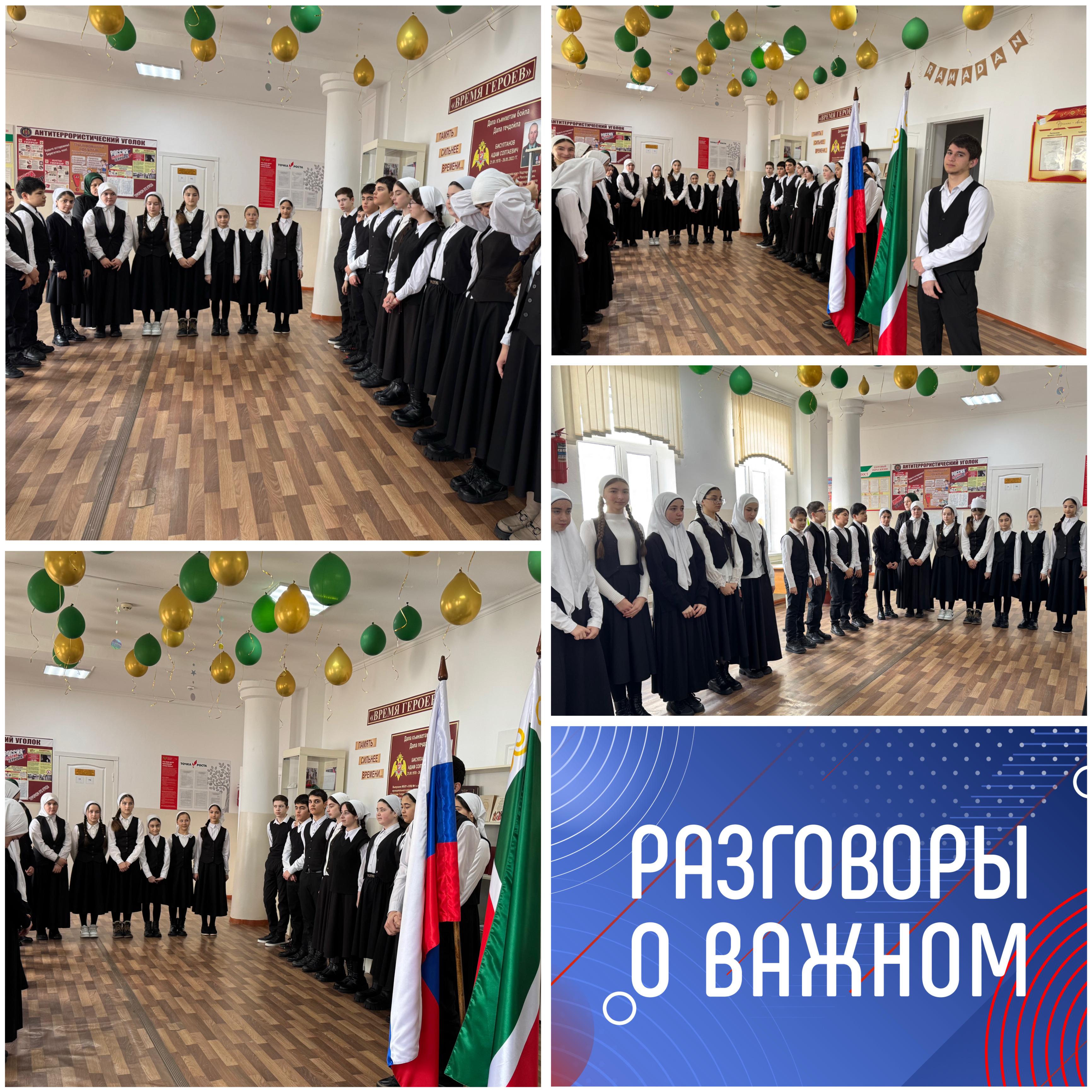 03.03.2025В МБОУ «СОШ №1 с.п. Гвардейское» прошла еженедельная линейка, которая началась с выноса государственных флагов Российской Федерации и Чеченской Республики. После линейки учащиеся разошлись по классам на внеурочное занятие «Разговоры о важном», приуроченное Международному женскому дню.