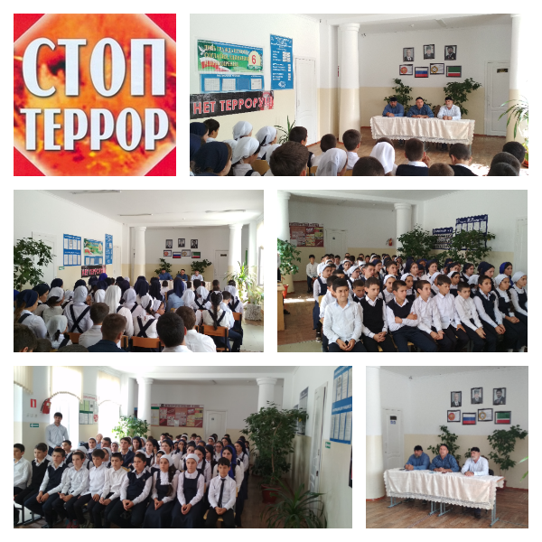 05.09.2018Была проведена беседа с учащимися 5-11-х классов, на тему: " Терроризм-угроза жизни" На встрече выступил ВРИО муфтия Надтеречного района Мунаев А-Х., и имам села Гвардейское Межидов С.Ж. В заключении выступил педагог-организатор по ДНВиР Джениев М.М.